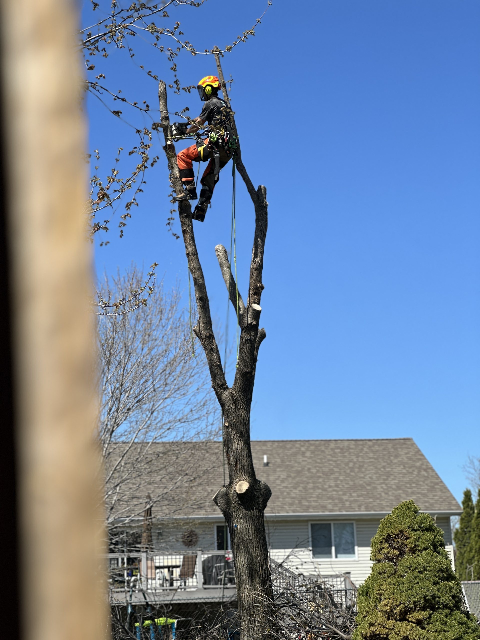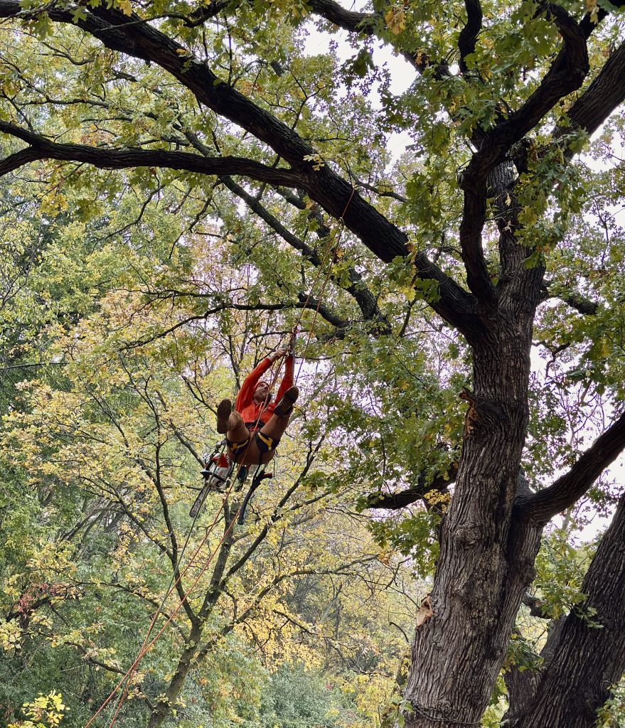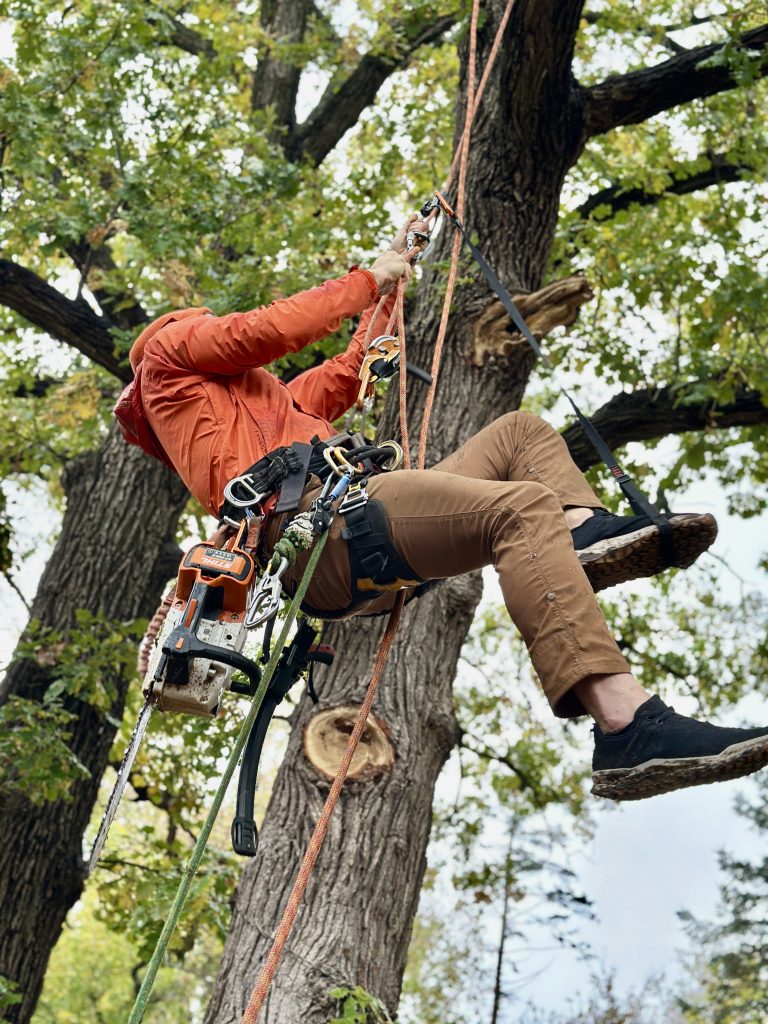 I specialize in technical removals using ropes and rigging to dismantle trees safely without bringing heavy equipment onto your grass.