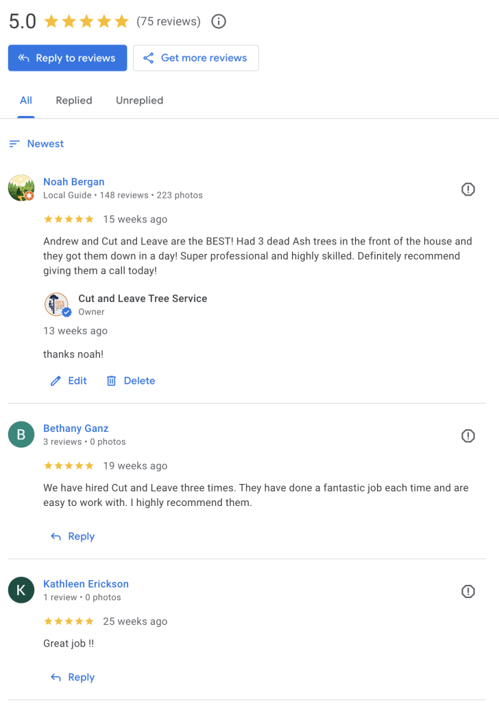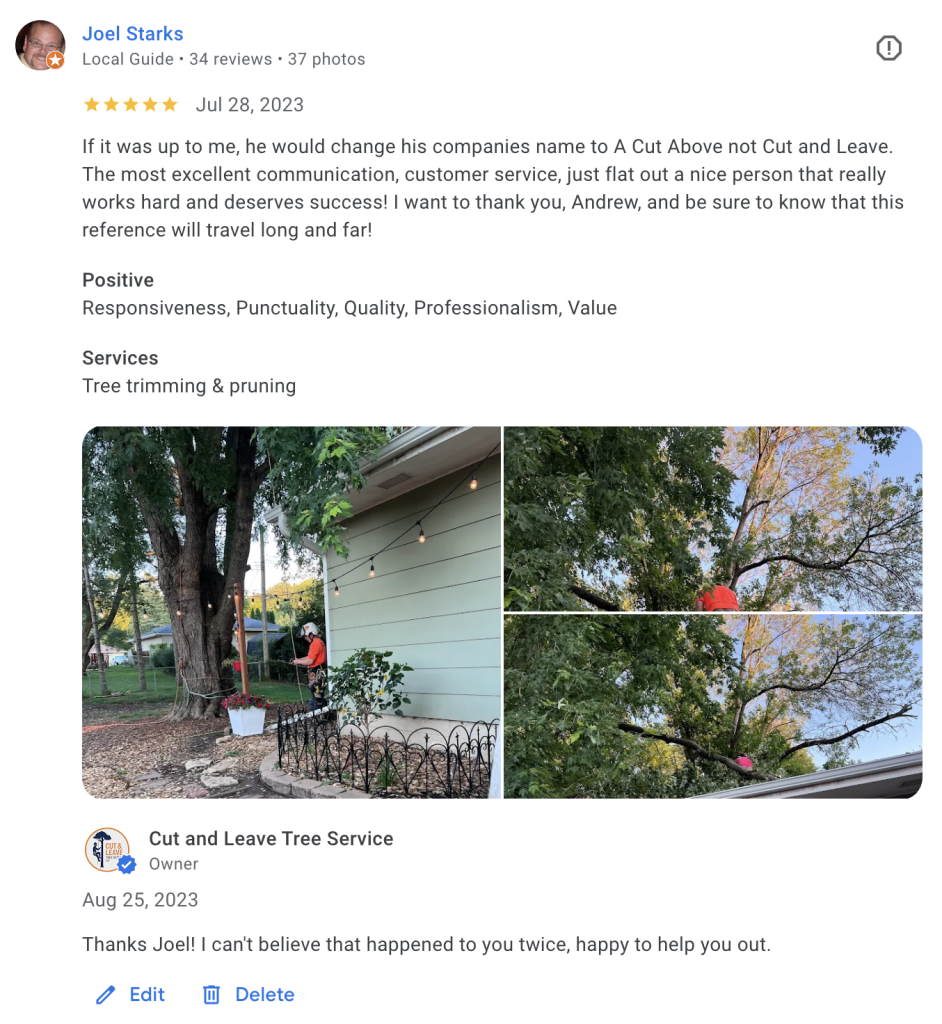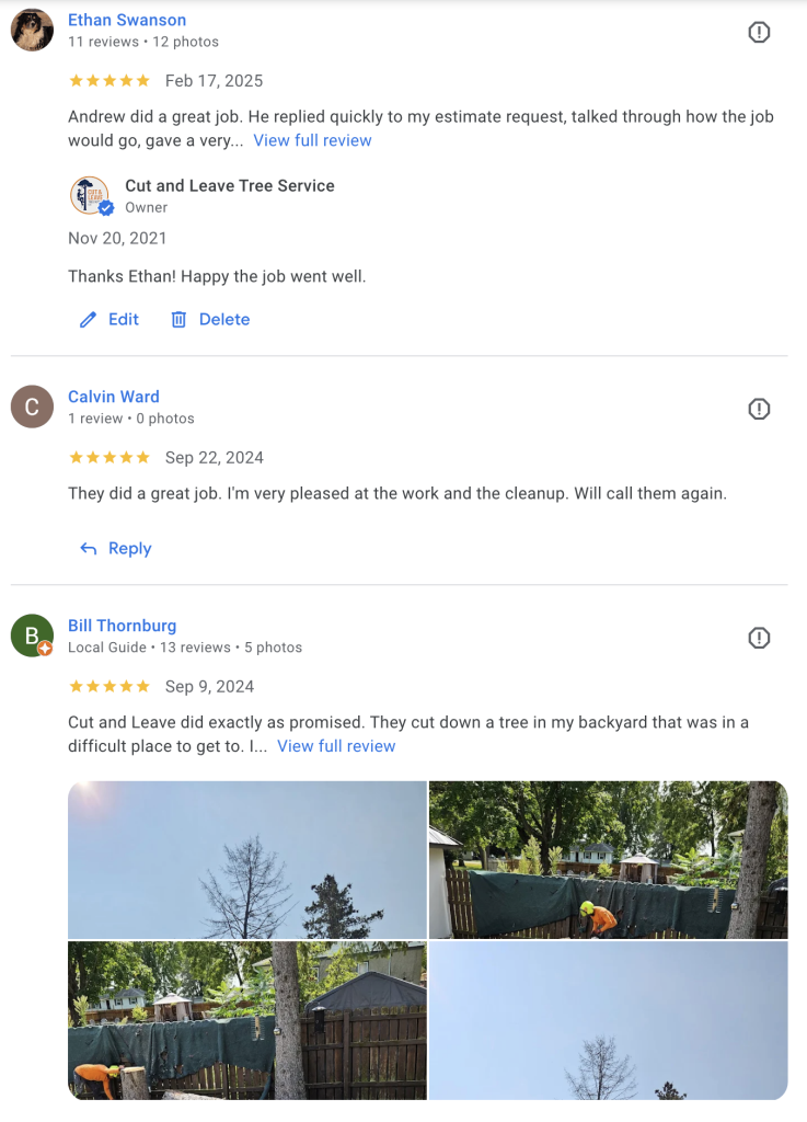 For Removals: We’ll tag the trees or send you a photo confirmation of the exact targets.